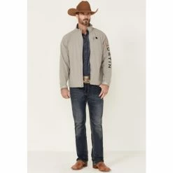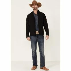 Best Sale ๐คฉ Justin Men’s Solid Charcoal Stillwater Logo Sleeve Zip-Front Fleece Jacket ๐
